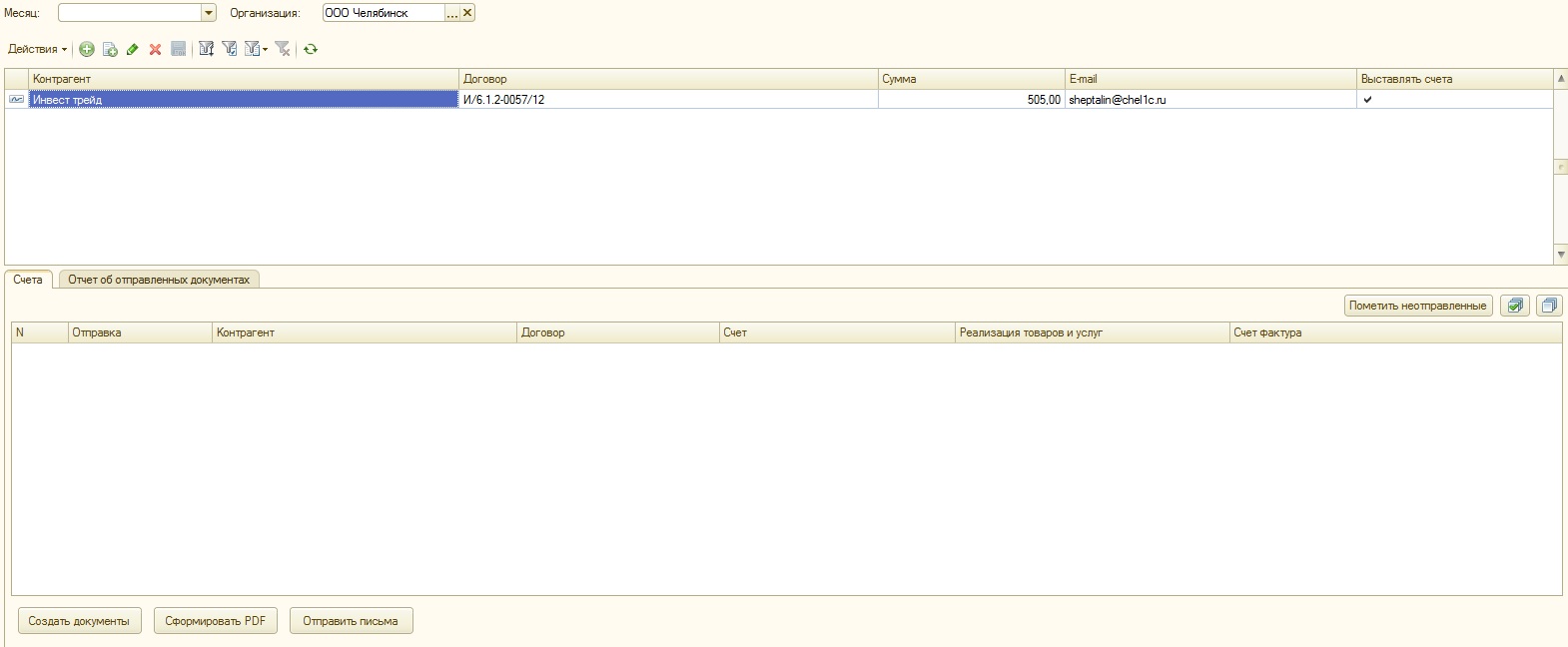 Автоматизация создания и рассылки счетов, документов реализации и счетов-фактур